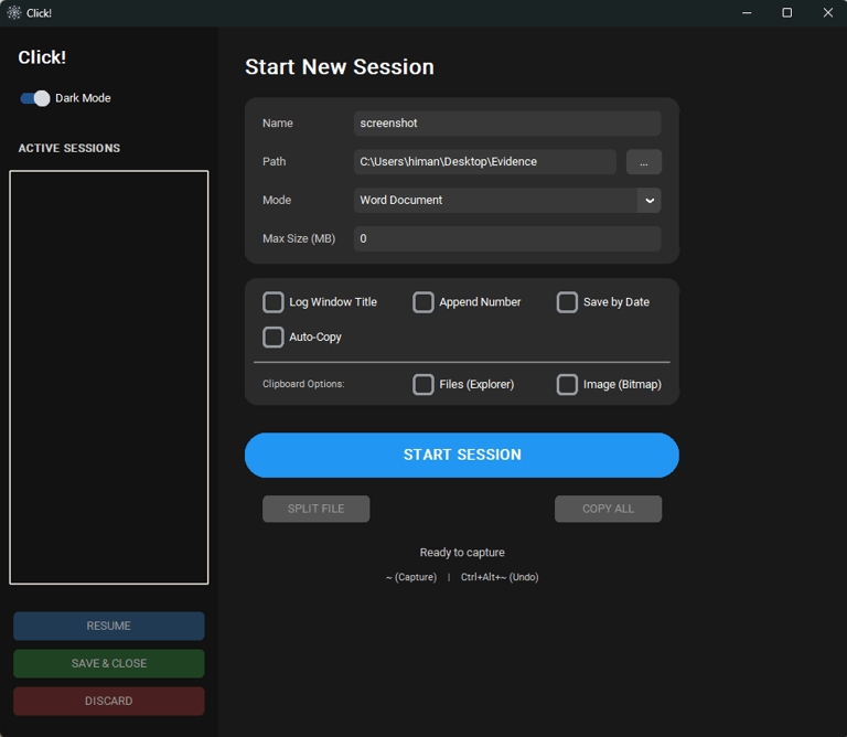 Click! - Professional high-speed screenshot automation tool for Windows.